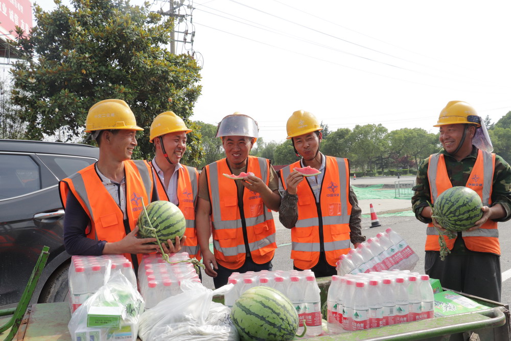为致敬劳动者,营造健康和谐发展氛围,5月31日下午,公司党委副书记、总经理周宝宏,公司工会主席、纪委书记张万宝等同志代表公司在戴南项目开展“致敬建设者,酷暑送清凉”活动,向顶着酷暑、奋战在建设一线的工人们送去清凉和关爱。