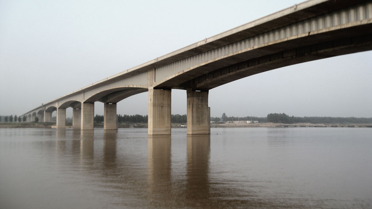 鄄城黄河公路大桥是一座横跨黄河的特大型桥梁,地处山东省南部鄄城县以北,位于山东与河南两省交界处,它是规划建设的德州至商丘高速公路的一个重要控制工程,德商高速公路是山东省五纵四横一环公路框架系统的最西端一纵。 该项目起点桩号K200+155,终点桩号K201+615,跨径布置为70m+11x120m+70m,两端边跨与引桥相连。钻孔灌注桩基础,9#和22#过渡墩为Ф2.0m共16根,10#~21#主墩为Ф2.2m共144根,最大桩长85m,左右分离式承台,花瓶式空心墩,桥梁上部结构形式为波形钢腹板PC结合梁,结构形式及跨径组合为国内首创。单跨最大跨径120m,国内同类桥型第一,连续长度1460m,规模世界第一。