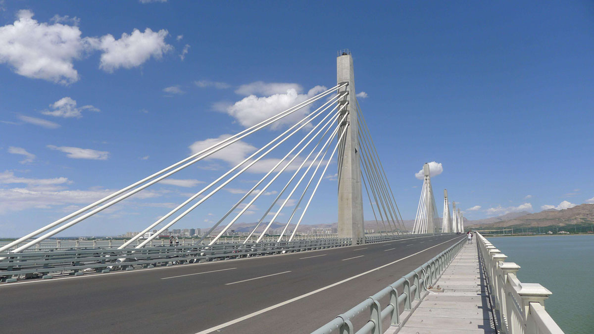 工程概况:甘德尔黄河大桥是连接乌海市黄河两岸的一座公路一级兼城市桥梁,大桥西起乌海的滨河西区规划道路,从西向东依次跨越黄河,横跨滨河大道,止于滨河新区的新110国道与运煤通道南连接交叉处,设计速度为60Km/h。
