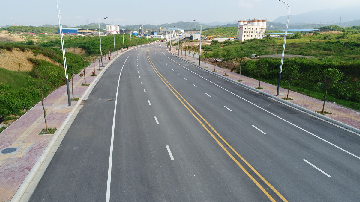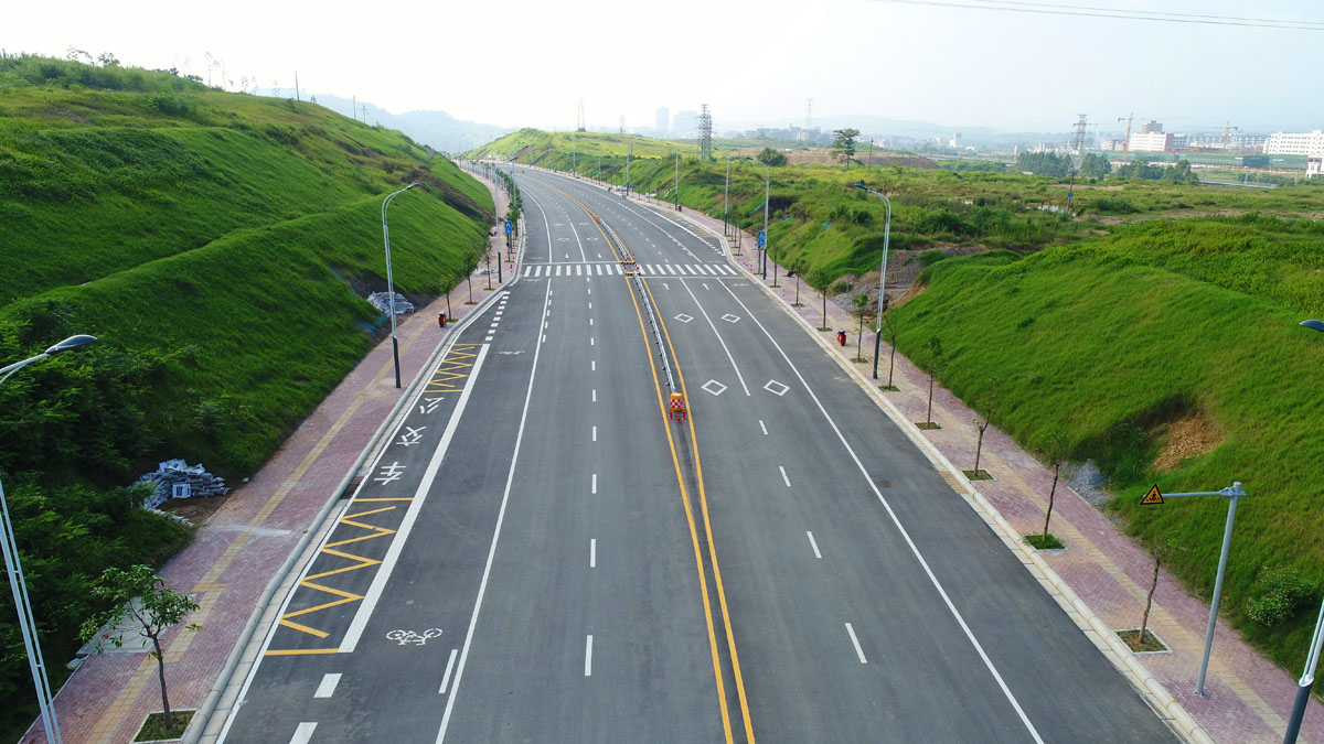 百东新区纬六路位于百东新区产业园区,东西走向,是百东新区产业园区起步区主要道路,起点与隆百高速相邻,终点与经一路相交.道路全长2098.33m,宽30m,双向四车道,横断面形式为4m路侧带+10.75m行车道+0.5m中心双黄线+10.75m车行道+4m路侧带,路面采用沥青混凝土路面,路面结构设计年限10年。